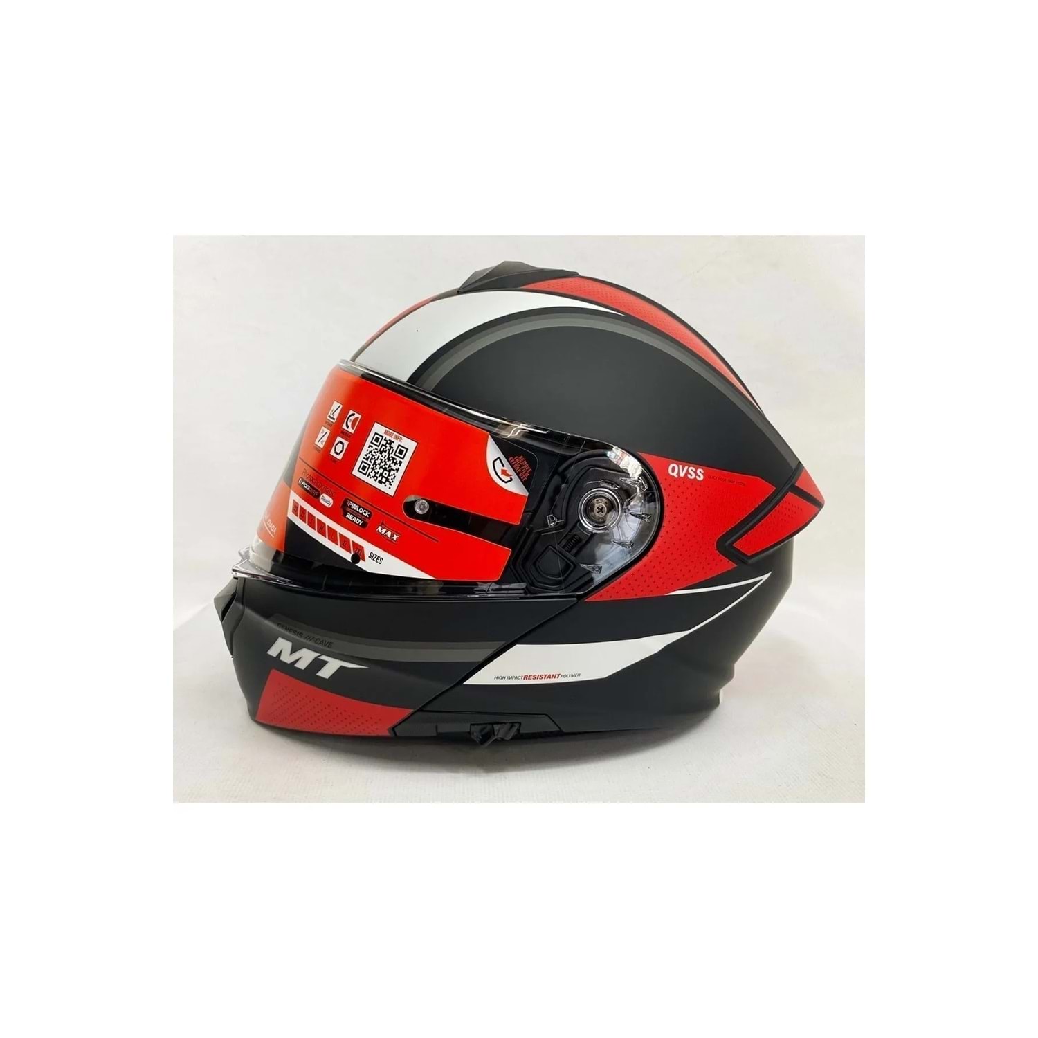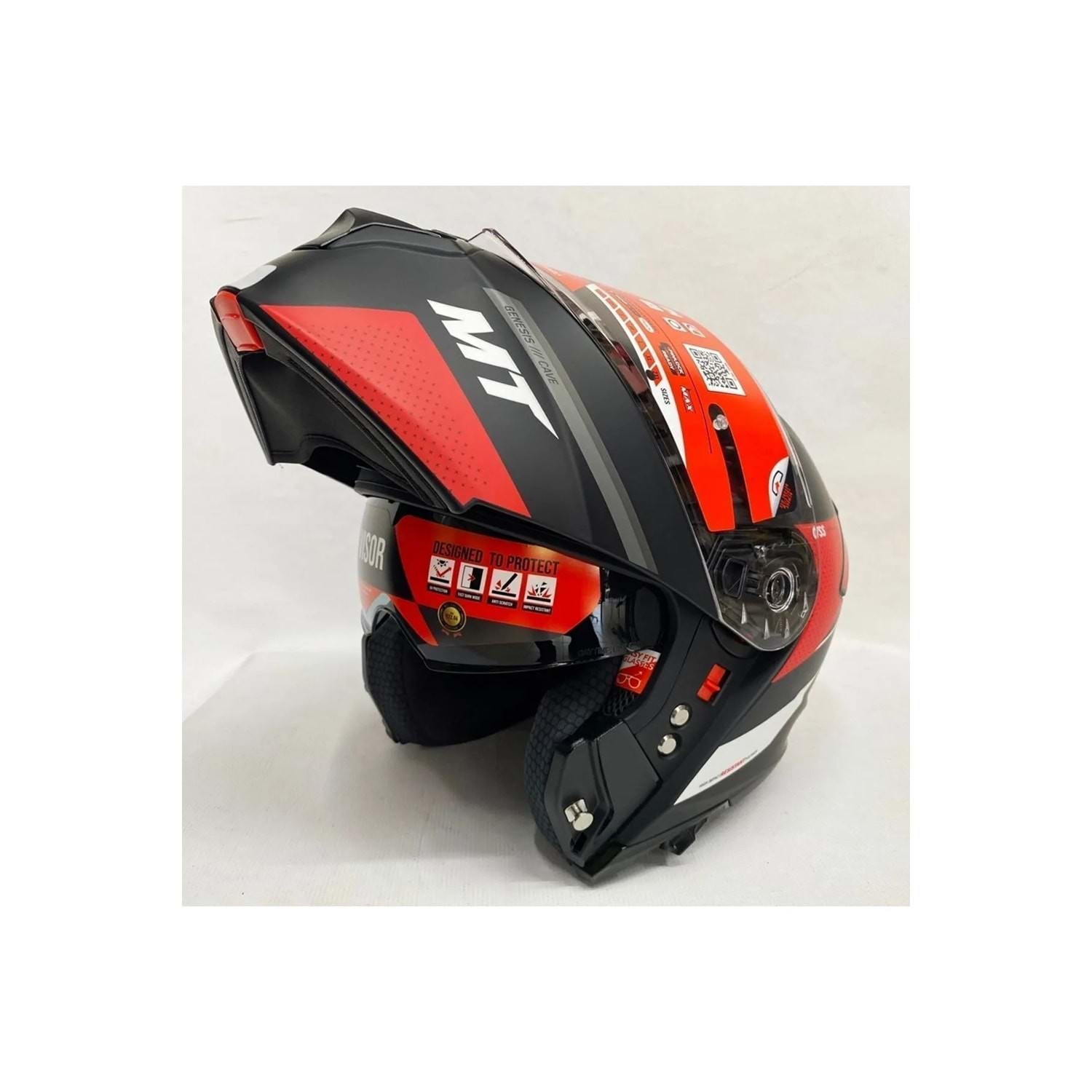 MT Genesis Cave A5 Mat Kırmızı Siyah Çene Açılır Kask